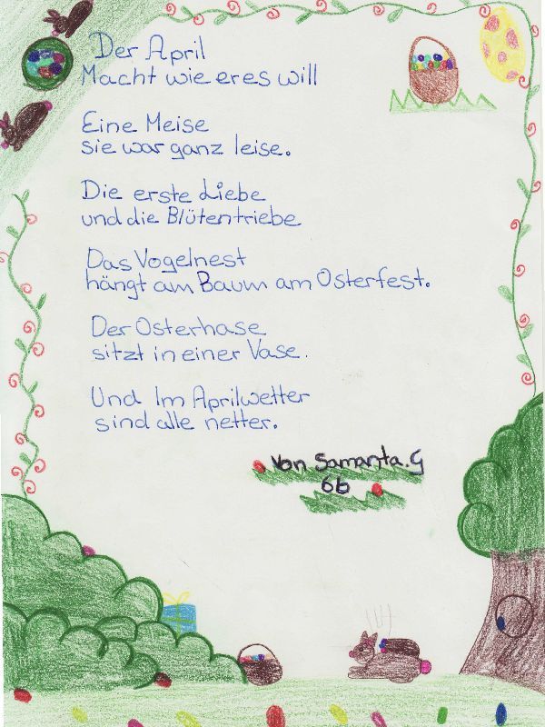 März 2013 - Klasse 6b - Wir schreiben ein Frühlingsdedicht