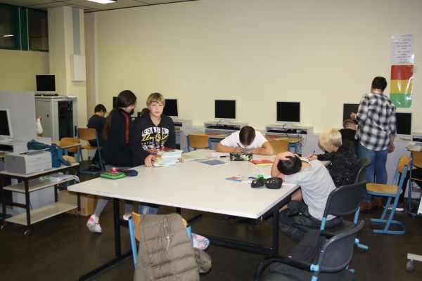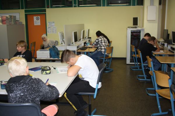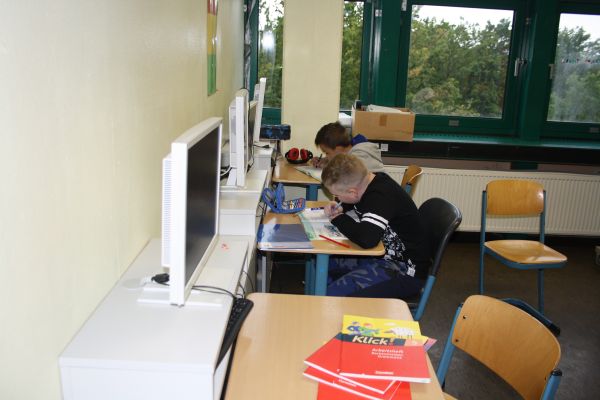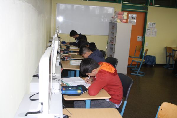Hier arbeiten die Schüler an ihren individuellen Arbeitsheften und an